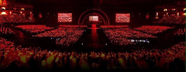 東京巨蛋我們美麗的紅海,用愛心圍繞著當中的JYJ舞台,真的是好美的畫面。
